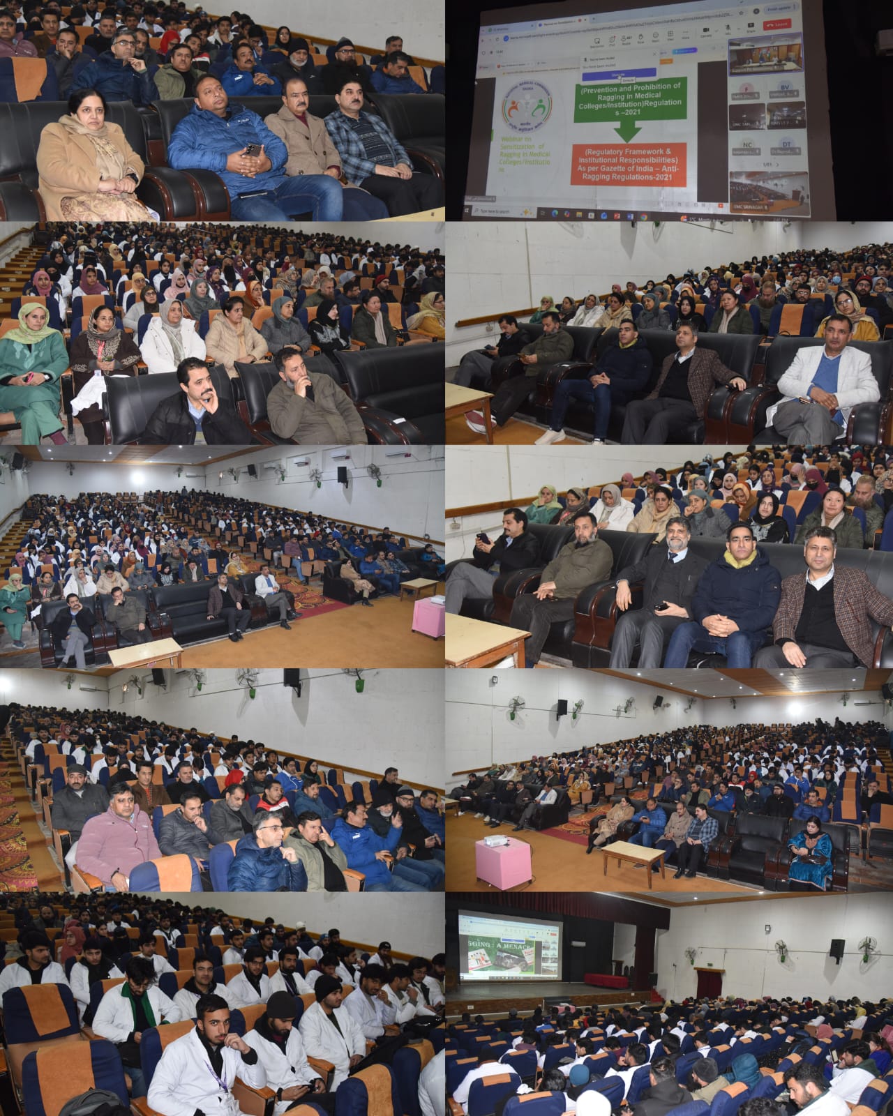 Government Medical College (GMC) Srinagar today attended a webinar delivered by Dr. Abhijat Chandrakant Sheth, Chairman of the National Medical Commission (NMC) on “Sensitization on Ragging, Laws/Regulations, and Live Case Studies”, held at the Auditorium Hall, GMC Srinagar.